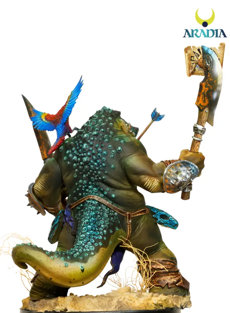 Zipacna is a striking miniature inspired by Mayan mythology, portrayed as a powerful anthropomorphic crocodile man with a fierce and ancient presence. The sculpt highlights reptilian anatomy, pronounced musculature, and intricate details that evoke the primal essence of Mesoamerican legends.